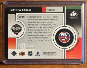 2024-25 SP Game Used Mathew Barzal Stadium Series Puck Relics #SSP-MB