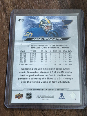 2023-24 Upper Deck Outburst Silver #410 Jordan Binnington - St. Louis Blues