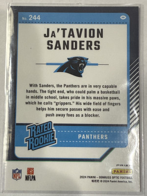 JA'TAVION SANDERS 2024 DONRUSS OPTIC RATED ROOKIE RED PRIZM #244 RC PANTHERS