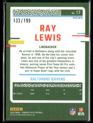 2023 Panini Donruss Optic Prizm Ray Lewis #17 Blue 133/199