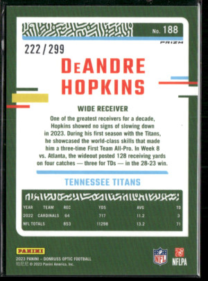 2023 Panini Donruss Optic Prizm DeAndre Hopkins #188 222/299