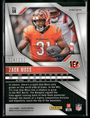 2024 Panini Prizm Football Zack Moss #56 Silver 124/230