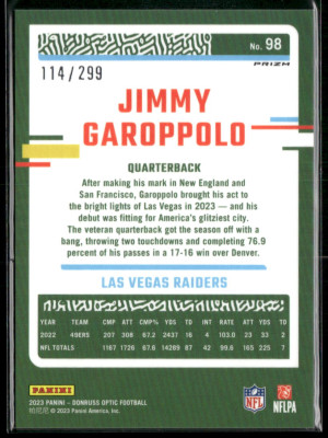 2023 Panini Donruss Optic Prizm Jimmy Garoppolo #98 114/299