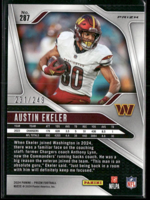 2024 Panini Prizm Football Austin Ekeler #287 Orange 231/249