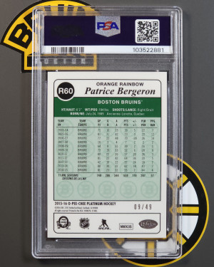 2015-16 O Pee Chee OPC Platinum Retro Orange /49 Patrice Bergeron PSA 10 Pop 1