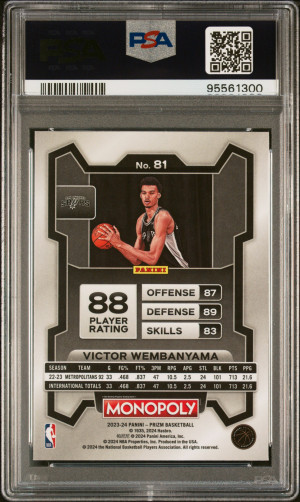 Victor Wembanyama 2023-24 Panini Prizm Monopoly Rookie Card, Perfect PSA 10 Gem