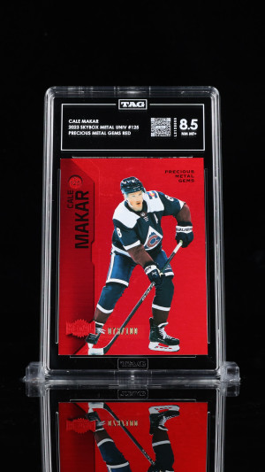 Cale Makar 2023 Skybox Metal Universe #125 Precious Metal Gems Red PMG