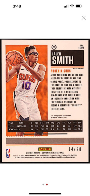 Jalen Smith 2020-21 Panini Contenders Premium Blue Shimmer #109 Auto 14/20