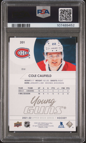 2021-2022 Upper Deck Cole Caufield Young Guns PSA 9 Mint