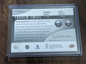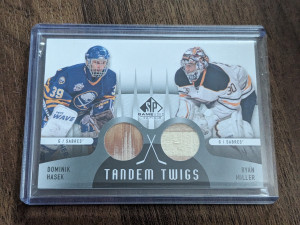 Dominik Hasek and Ryan Miller Tandem Twigs dual stick card sp game used
