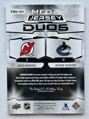 2022-23 Premier Mega Jersey Duos - Jack Hughes & Quinn Hughes /49