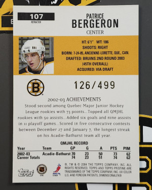 2003-04 Topps Pristine Refractor HIGH GRADE Patrice Bergeron Rookie RC /499