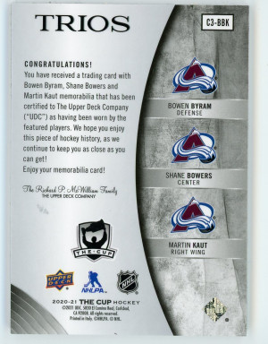 2020-21 The Cup #C3-BBK Bowen Byram Shane Bowers Martin Kaut Trios Jerseys 11/35