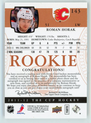2011-12 The Cup #143 Roman Horak Gold Rainbow Rookie Auto Patch 15/51