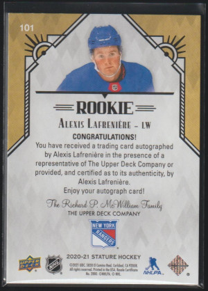 Alexis Lafreniere 2020-21 Stature Rookie Auto /199