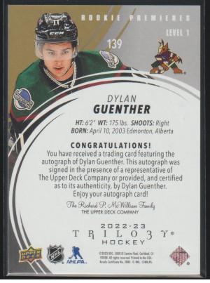 Dylan Guenther 2022-23 Trilogy Level 1 Rookie Premieres Auto /299