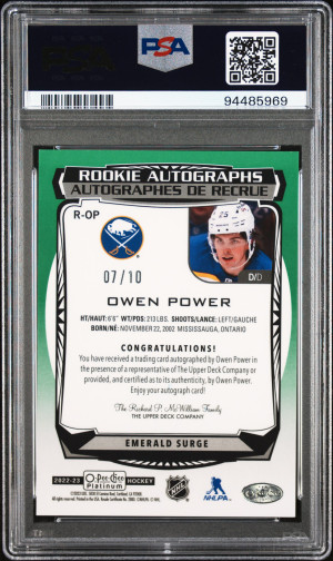 2022-23 O-Pee-Chee Platinum Rookie Autographs Owen Power Rookie Auto-Emerald Surge /10