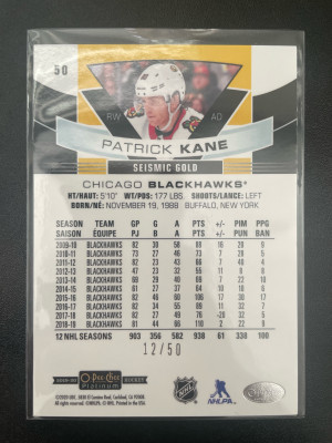 2019-20 O-pee-chee Platinum Patrick Kane Seismic Gold /50