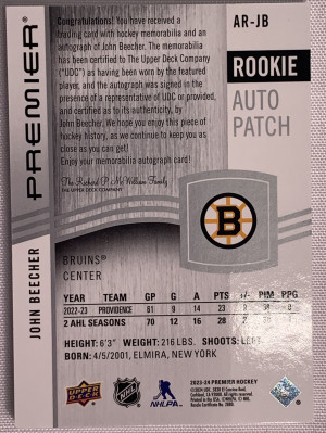 John Beecher Premier Rookie Patch Auto /249