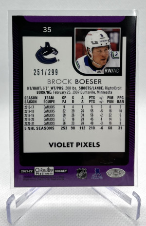 2021-22 O-Pee-Chee OPC Platinum Violet Pixels #35 Brock Boeser /299