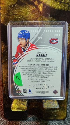 Jordan Harris '23 UD Trilogy Rookie Premiers 63/499 Patch Card Level 1
