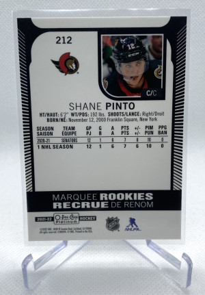 2021-22 O-Pee-Chee Platinum Shane Pinto Base Marquee Rookie #212