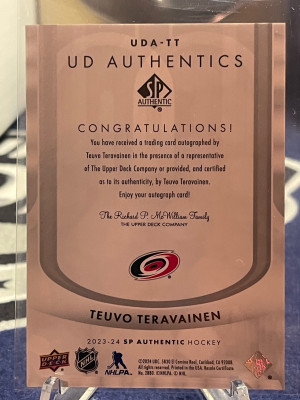 2023-24 UPPER DECK SP AUTHENTICS AUTOGRAPHS TEUVO TERAVAINEN AUTO