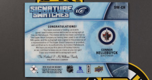 2018-19 Upper Deck UD Ice Signature Swatches Auto Mem Connor Hellebuyck /150