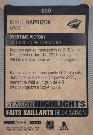 2021-22 O-Pee-Chee Kirill Kaprizov Season Highlights