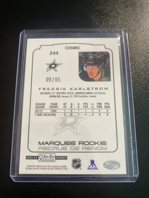 Fredrik Karlstrom 22-23 OPC Platinum Marquee Rookie Cosmic /65
