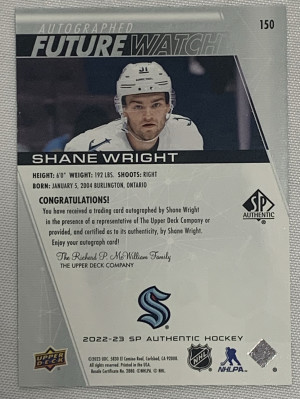 2022-23 SP Authentic Shane Wright Future Watch Auto /999