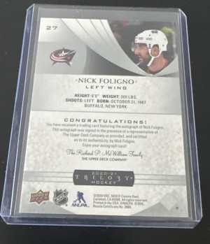 2020-21 Upper Deck Trilogy Auto Nick Foligno Auto
