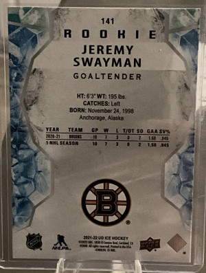 2022-22 Upper Deck Ice Jeremy Swayman Rookie Green Parallel