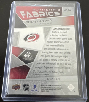 SEBASTIAN AHO 2021-22 UPPER DECK SP GAME USED AUTHENTIC FABRICS PATCH