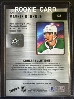 Mavrik Bourque 102 Rookie Base Auto 2024-25 Metal Universe Hockey