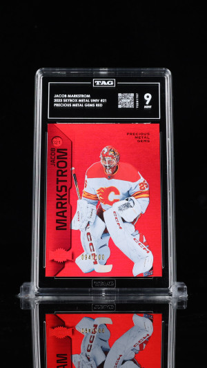 Jacob Markstrom 2023 Skybox Metal Universe #21 Precious Metal Gems Red PMG Mint 9