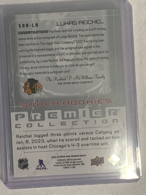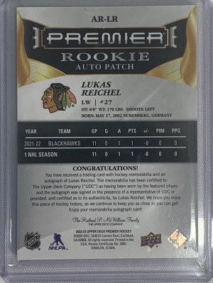 Lukas Reichel Premier Super Rookie Patch Auto /99