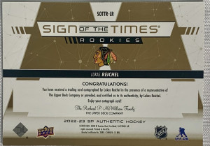 Lukas Reichel Sign Of The Times Rookie Auto Inscribed /25