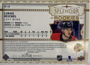 Lukas Reichel Splendor Rookie Patch Auto The Cup /49