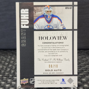 2024-25 UD SPX - Grant Fuhr All Time Greats Holoview Gold Auto # 8/10