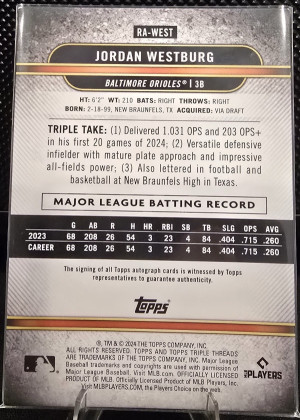 2024 Topps Triple Threads Jordan Westburg Rookie Auto /147