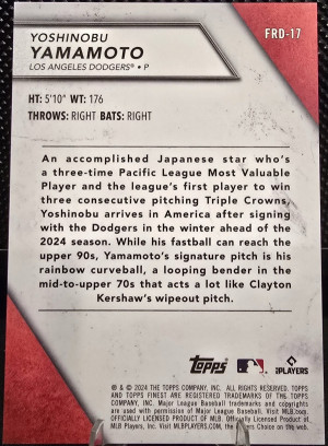 2024 Topps Finest Yoshinobu Yamamoto Finest Rookies /125 Refractor RC