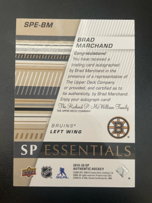 2019-20 Sp Authentic Hockey Brad Marchand SP Essentials Autograph /25