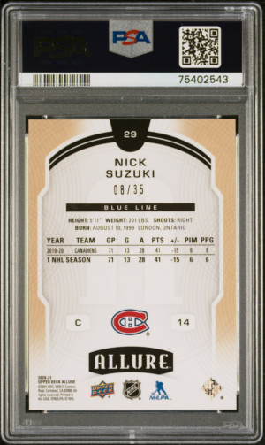2020 Upper Deck Allure Nick Suzuki #29 Blue Line PSA 10
