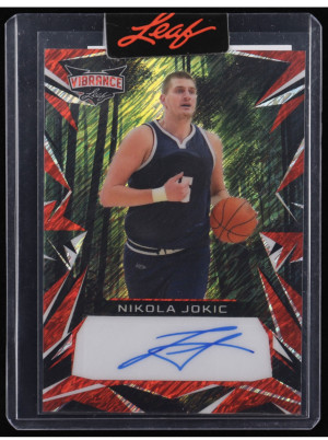 Nikola Jokic 2023 Leaf Vibrance Shimmer Red Autographed Pre-Production Proof #1/1