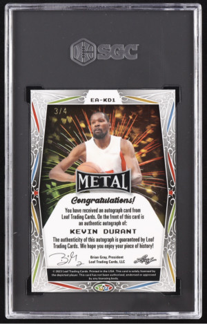 Kevin Durant 2024 Leaf Metal Ebay Exclusive Autographs Prismatic White #EAKD1 #3/4 (SGC 10)