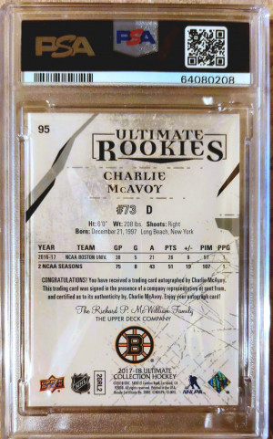 Charlie McAvoy Ultimate Rookies Auto /99 PSA 10
