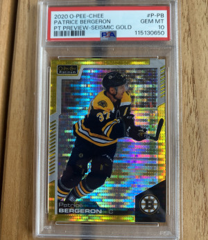 Patrice Bergeron 2020-21 O-Pee-Chee Platinum Preview Seismic Gold /25 PSA 10 POP 1