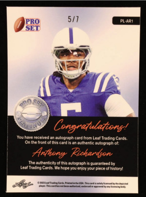 Anthony Richardson Auto 1/1 2023 Leaf Pro Set GP-AR1