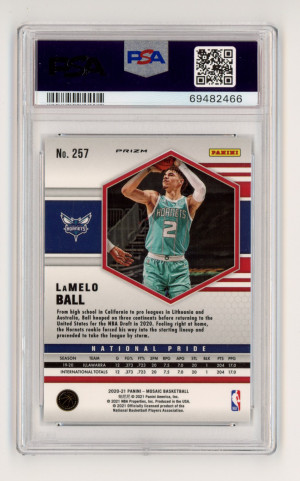 2020-21 Panini Mosaic LAMELO BALL Rookie RC RED WAVE PRIZM #257 Hornets - PSA 10 - Charlotte Hornets